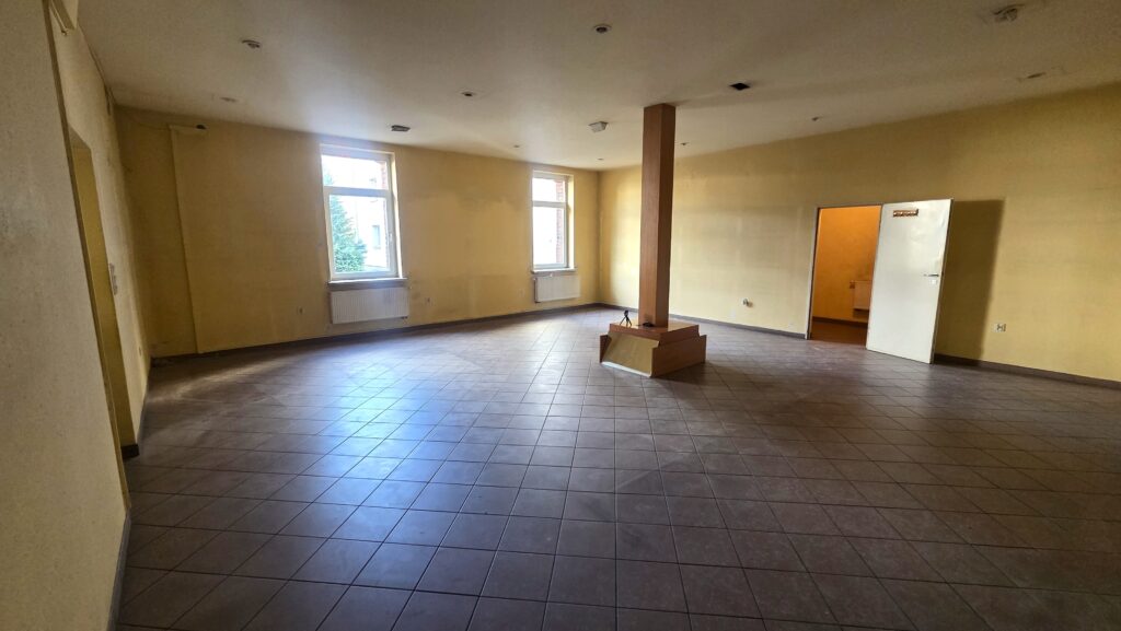 W układzie przestronna sala oraz zaplecze i toaleta.
