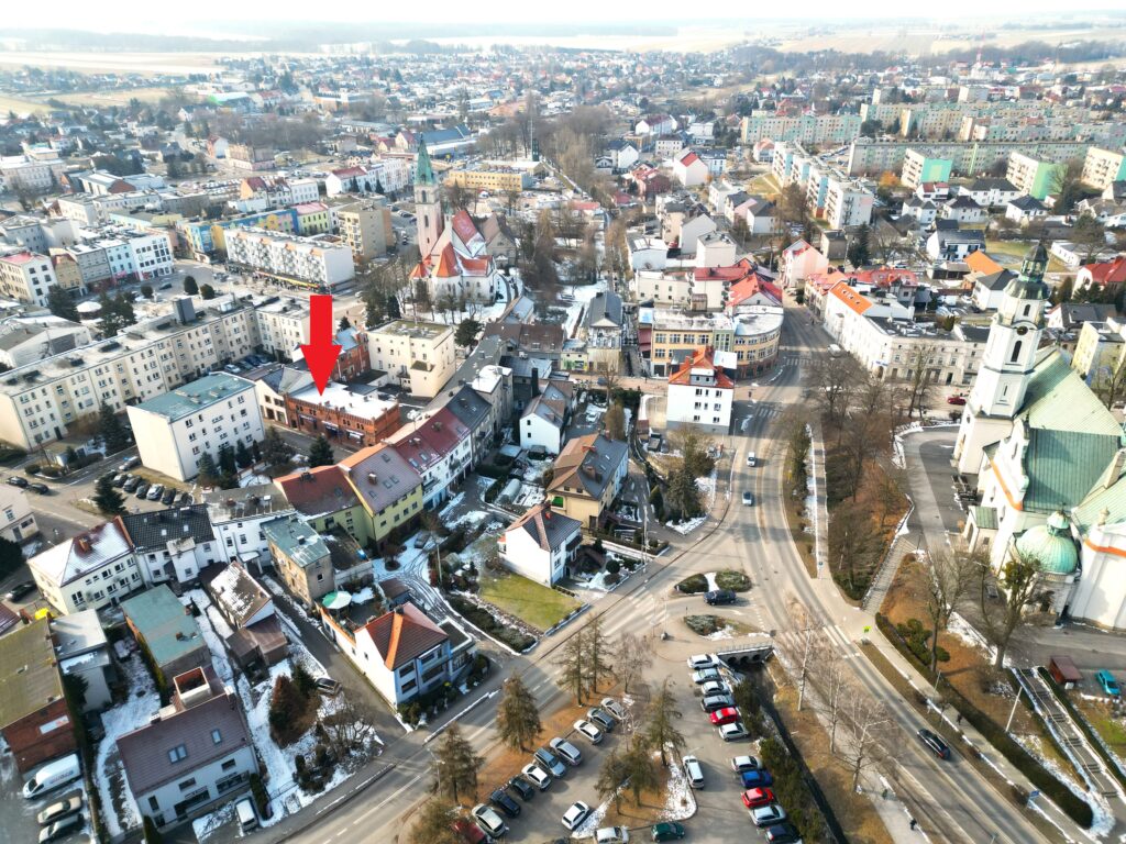 Do wynajęcia lokal usługowy na parterze w prestiżowym budynku w centrum Olesna. Powierzchnia 70,7 m², wysoki sufit (3,07 m), reprezentacyjne wejście z przedsionkiem.